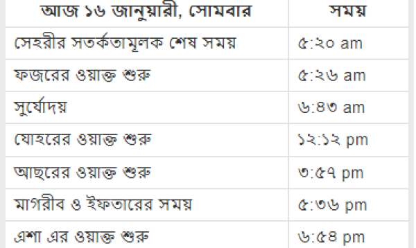 ফজর (১৭ জানুয়ারি): ৫:২৬ মিনিট।