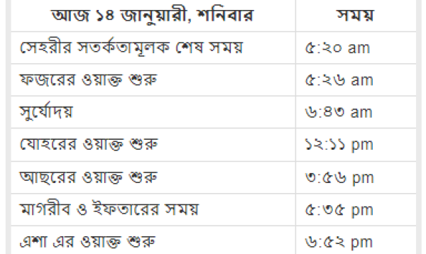 ফজর (১৫ জানুয়ারি): ৫:২৬ মিনিট।
